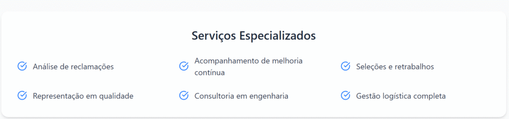 Oferecemos uma gama completa de serviços especializados em assistência técnica, qualidade e engenharia para o setor automotivo e industrial.