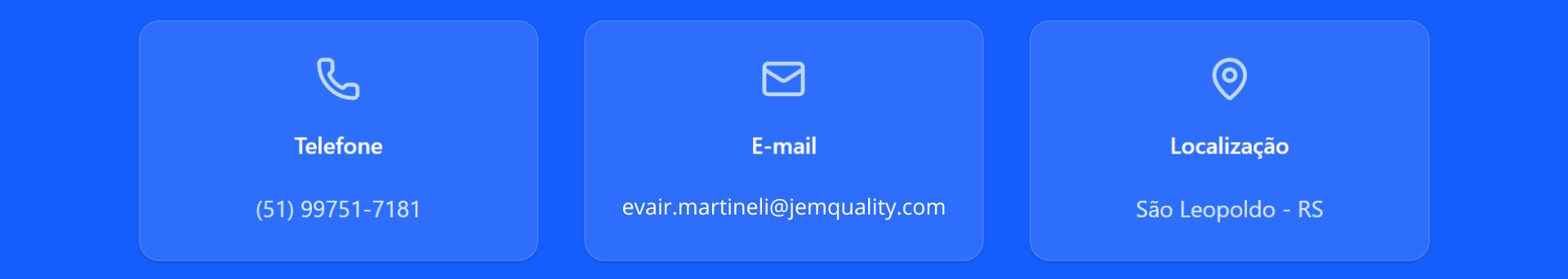 Preencha o formulário abaixo e entraremos em contato em breve ou envie um e-mail para (Evair.Martineli@jemquality.com)